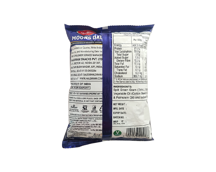 Split moong beans are seasoned with a variety of delicious spices. An all-time favorite from Haldiram, you don't need a special moment or occasion to mull over these!